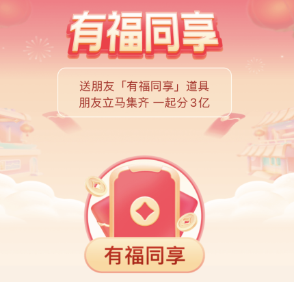同一用户至多可获得/接受1次“有福同享”道具,因为接受邀请“有福同享”而集齐5张年味卡的用户不会再获得有福同享道具。