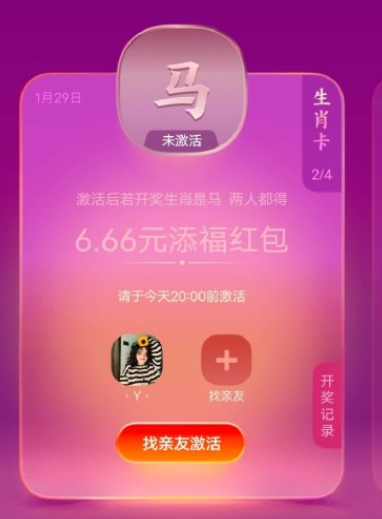 2、获得生肖卡后就不能帮亲友激活了。