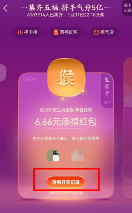 5、只有集齐并合成五福,添福红包才可以收到哦。