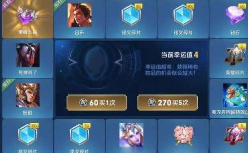 荣耀水晶需要在游戏中的夺宝-积分夺宝中进行抽取,目前积分夺宝幸运值满值是360,所以,第361次是必出荣耀水晶的。
