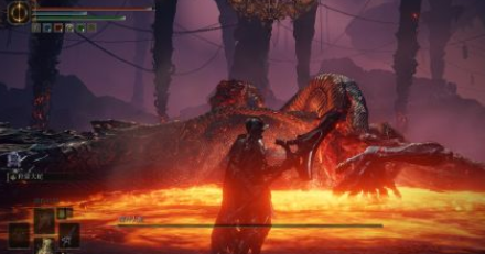 然后滑落到右侧熔岩泡建筑池里,找到城市(耐心多走走,总能找到),有两个蛇头雕塑的建筑(下面洞里有咒蛙)上去,走甩火焰鞭子蛇那边,有个雾门需要插钥匙,然后一路跳铁笼下跳(血源老猎人工厂既视)就到了。