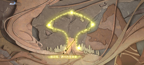 长按这个刷子图标,并且在屏幕上拖动,就能清理壁画了。