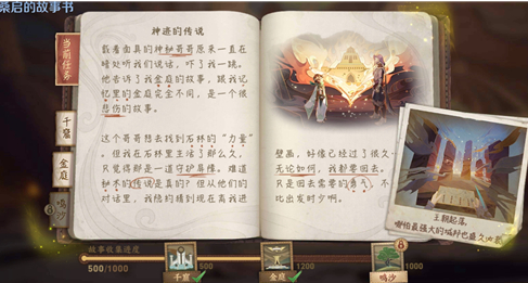 此时就获得了500点故事收集进度,剩下500点等4月28日的第三个剧情解锁后,完成了就能获得。