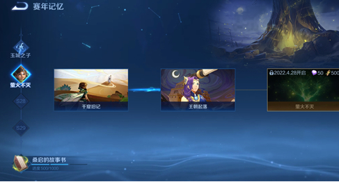 首先桑启的故事书中的故事收集进度,需要完成【赛年记忆】中的【萤火不灭】剧情分支后,才能获得,我们先点击赛年记忆。