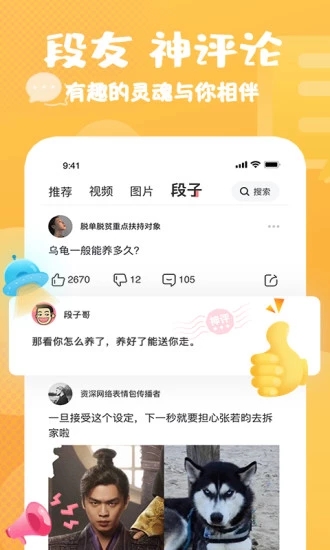 3、【内涵神评】戏精神评手,张口就是秀。火爆神贴刷不完,各种搞笑神评论,你就是段友中的轰炸机!