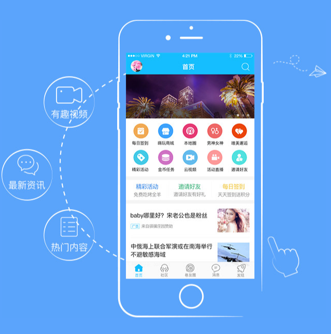 【版块详情页改造】支持顶部轮播图、支持多模块设置,页面元素更丰满 【新增圈子置顶】优秀内容,置顶显示,帮助用户更好的展现自己 【报名帖优化】支持展示报名帖,且可以在APP中报名活动 【帖子支持取消点赞】手速太快点错了,想取消点赞?我们支持啦 【分享至通讯录】碰到好的文章,可以一键分享给APP中的好友和群组中 【其他更新】帖子回复支持小视频、发帖支持先选择版块