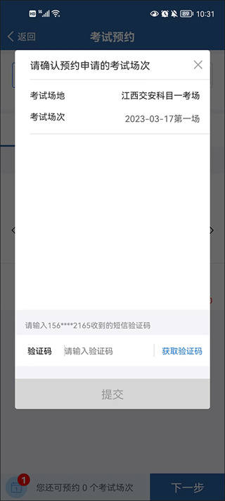 3、完成选择后即可收到预约成功的信息就代表完成考试预约。