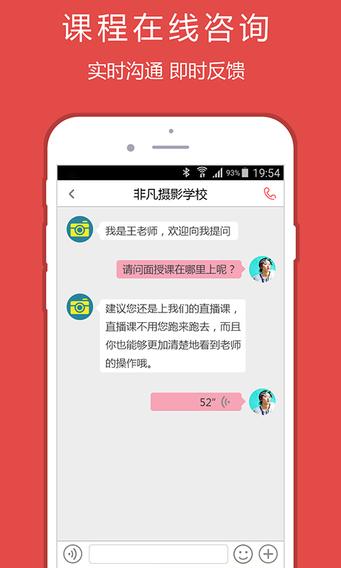 实时咨询提醒,实时语音、文字等多种方式回复学员咨询。