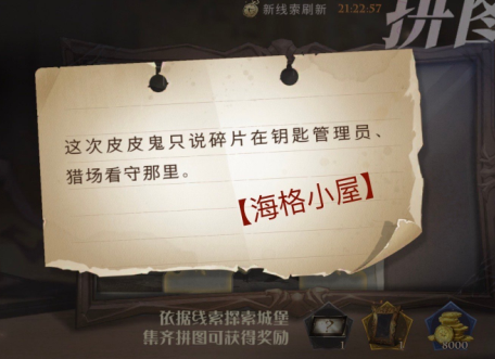 线索二:“这次皮皮鬼只说碎片在钥匙管理员、猎场看守那里。”
