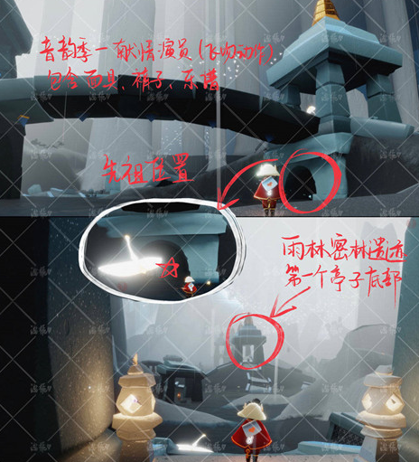 位置:飞吻先祖属于音韵季的先祖,在雨林的第一个亭子底部位置。