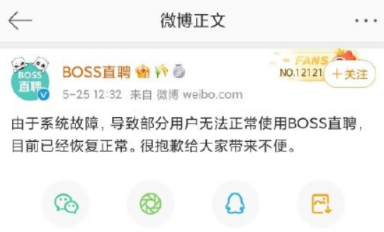 今天,boss直聘崩了冲上微博热搜,网友纷纷调侃:“找工作的人也太多了”、“毕业季,HR冲业绩的时候到了”。据悉,boss直聘崩了是因为系统故障,所以导致部分用户无法登录。